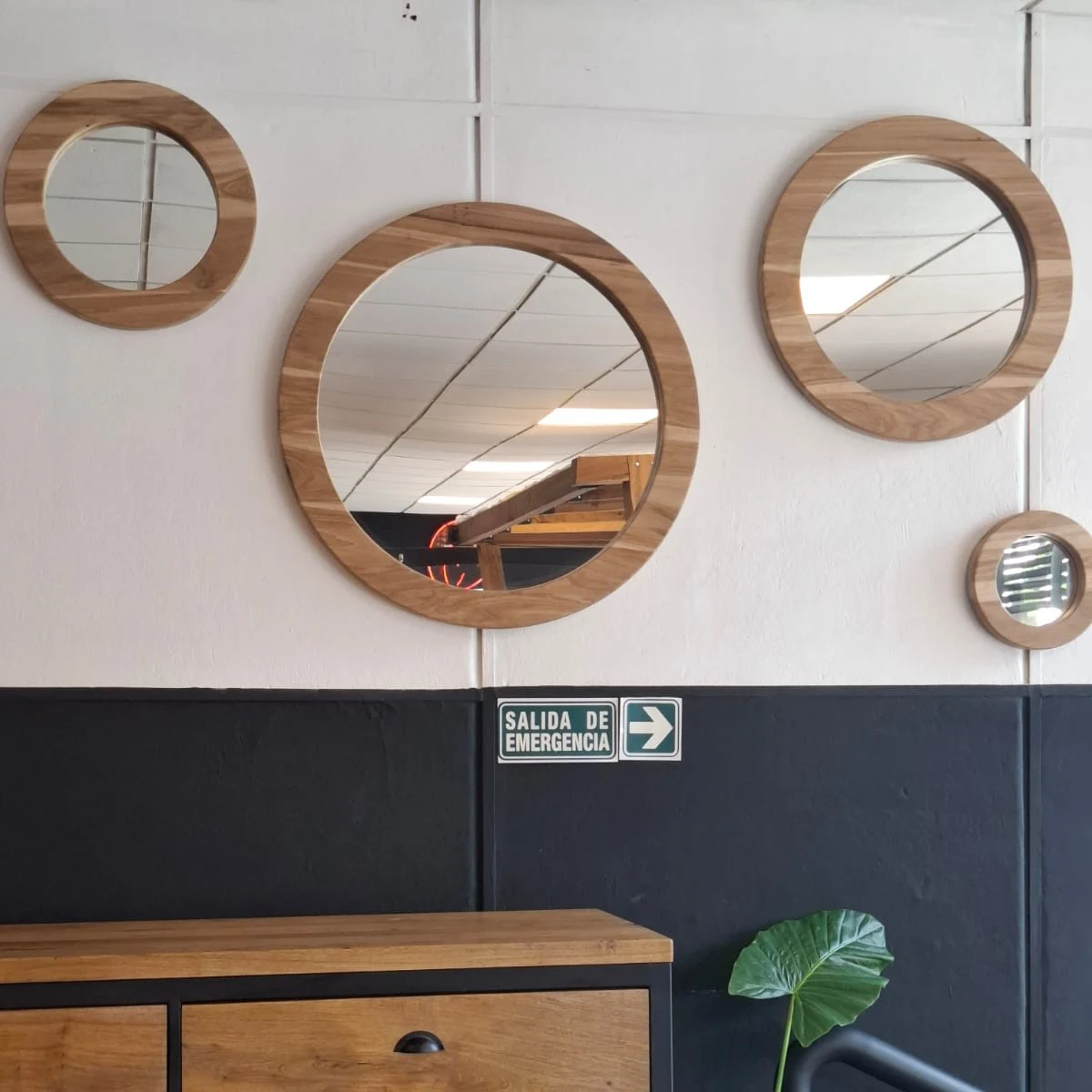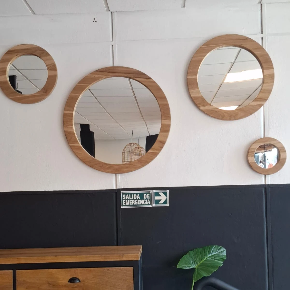 4 espejos redondos con el marco de madera maciza de peteribi, espejos ideales de decoración